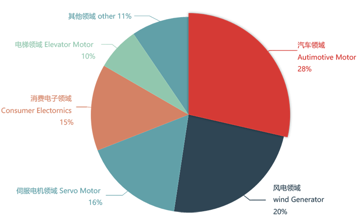 产品广泛地应用于振动马达电机、直流电机、线性电机、音响系统、变频空调、核磁共振、电动汽车等领域