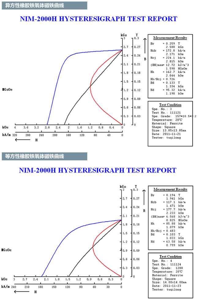 1、剩磁Br:永磁体从磁化至技术饱和并去掉外磁场后,所保留的Br称为剩余磁感应强度。