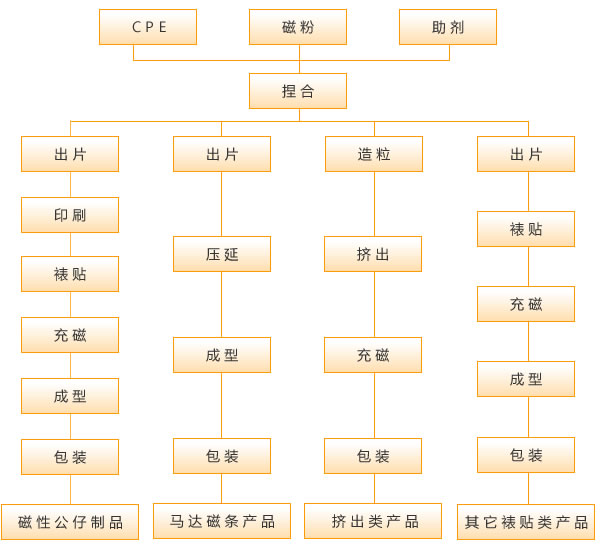 1、橡胶铁氧体永磁:用锶铁氧体磁粉作为填料,以橡胶类有机物作为粘接剂,并配以橡塑助剂,经过一定的加工工艺制备而成的复合磁性材料。